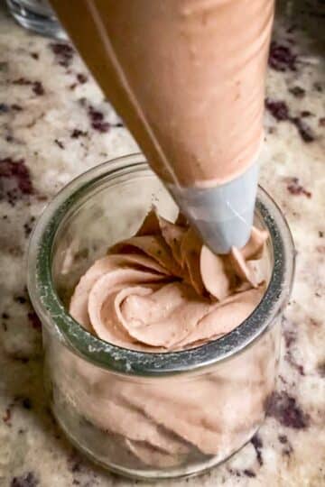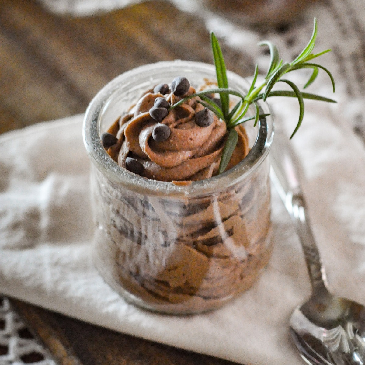 Using a piping bag, place mousse in the bag, then pipe into individual serving cups, into a peak.