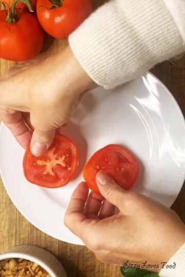 Preparation: Rinse all fresh tomatoes and cucumber under cold running water, then slice them.