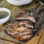 Tomahawk steak recipe is how my mom made her delicious steak.with a juicy caramelized crust served with a green sauce inspired by Le Relais.