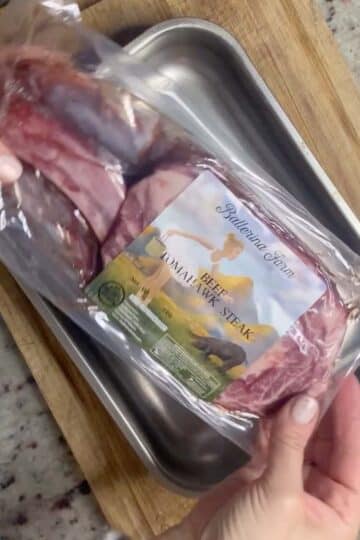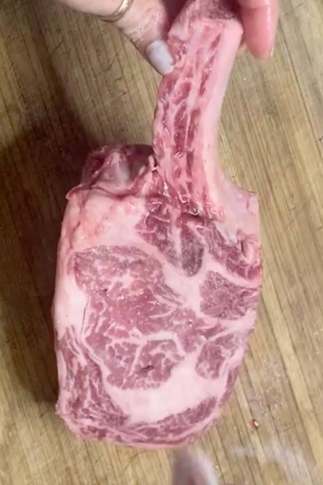 Use tongs to sear the edges and fat cap (about 30 seconds).